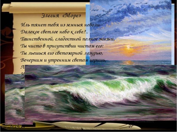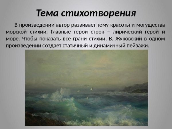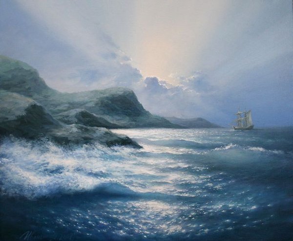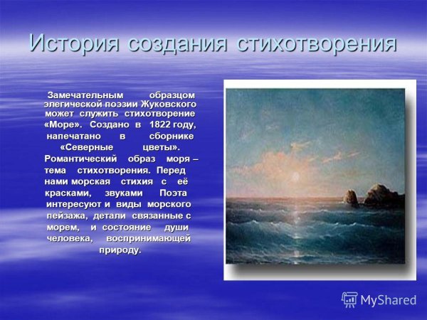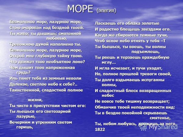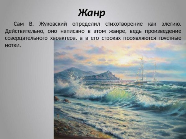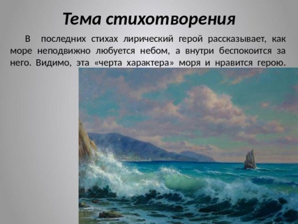Иллюстрация к стихотворению Жуковского "Море" ярко передает величие и красоту этого природного явления. На рисунке можно увидеть бескрайние просторы моря, сияющего под лучами заката. Волны, подобно живым существам, покачиваются на глади воды, создавая гипнотизирующий ритм. Спокойное небо, украшенное пастельными оттенками, сливается с волнами, словно они становятся единым целым. Иллюстрация вызывает у зрителя чувство благоговения перед мощью природы и одновременно захватывает своей неповторимой красотой. Эта работа навсегда запечатлевает в памяти моменты, когда мы созерцаем море и ощущаем его бесконечность и загадочность.