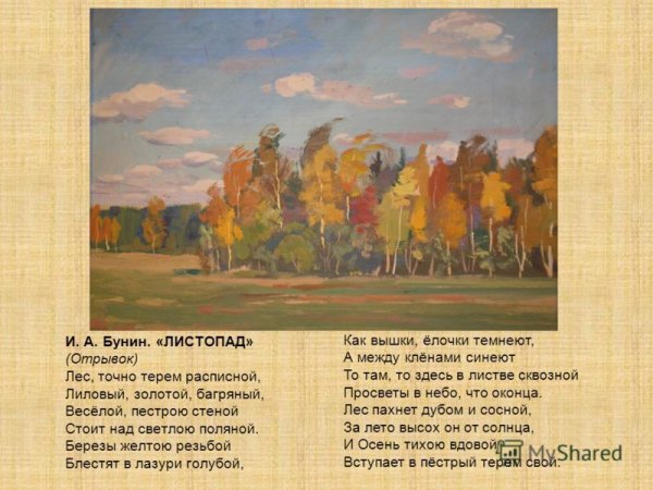 Иллюстрация к стихотворению Ивана Бунина "Листопад" - это визуальное воплощение темы осеннего увядания и упадка природы. Картина передает нежность и меланхолию этого времени года, показывая деревья, облетающие листьями, которые касаются земли своими последними желтыми и красными оттенками. Грустный настрой произведения передается через пастельные тона и игру света и тени. В каждом мазке художник передает эмоциональную суть стихотворения – скорбь, утрату и ностальгию за прекрасными днями, которые уже не вернутся. Эта иллюстрация является великолепным сопровождением к произведению Ивана Бунина и помогает читателю еще глубже ощутить его эстетическую и эмоциональную сущность.