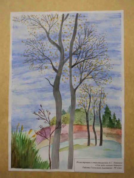 Иллюстрация к стихотворению Пушкина "Уж небо осенью дышало" воплощает в себе весь колорит и настроение осеннего времени. На картине видны яркие краски осенних листьев, которые заполняют всё пространство, создавая ощущение тепла и уюта. Небо изображено в оттенках серого и голубого, что передает неповторимую атмосферу осенней погоды. В центре иллюстрации присутствует главный объект - дышащее небо, которое символизирует не только прекрасную природу, но и мимолетность жизни. Изображение навевает чувство меланхолии, но в то же время вызывает восхищение красотой осени. Эта иллюстрация способна погрузить зрителя в атмосферу стихотворения и передать эмоции, которые оно вызывает.