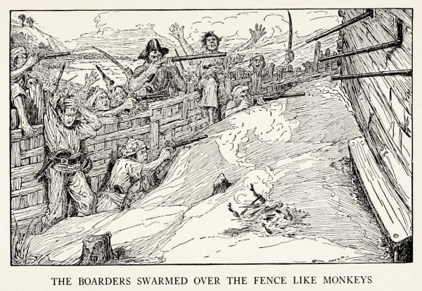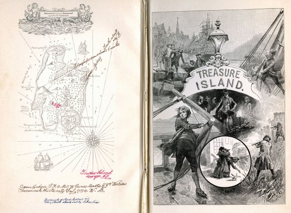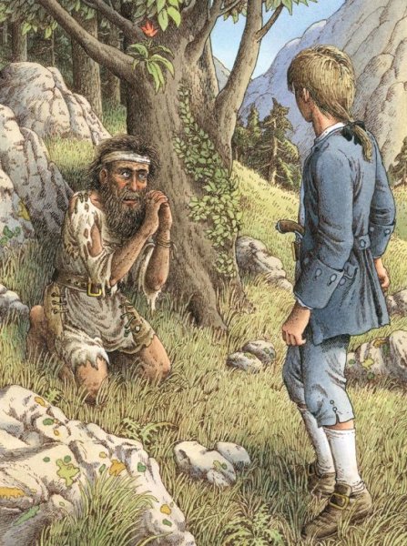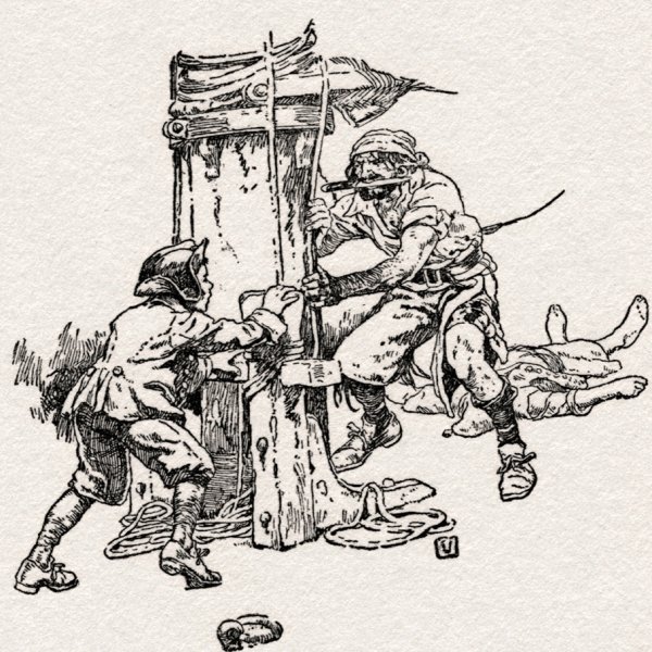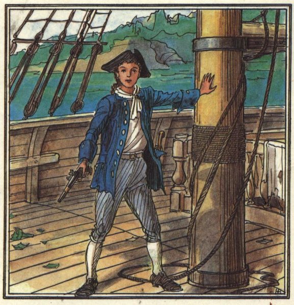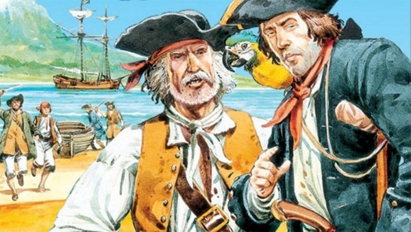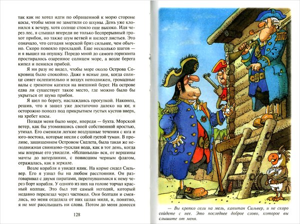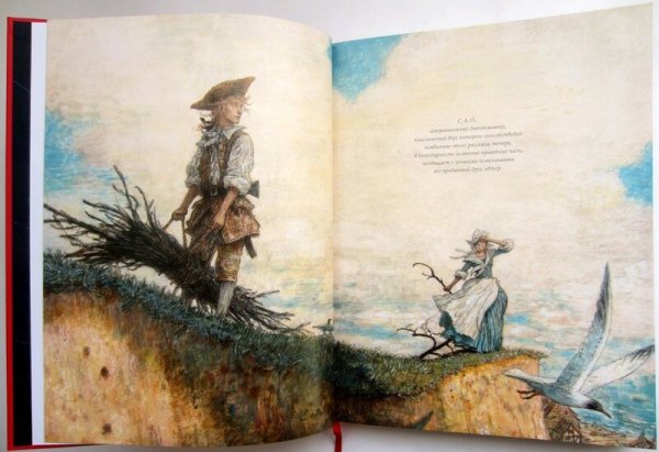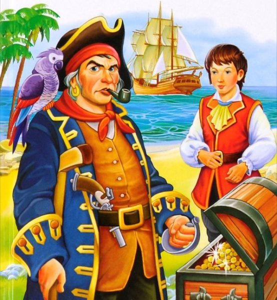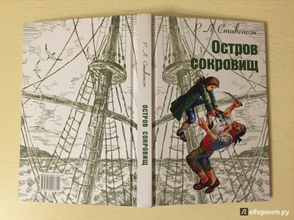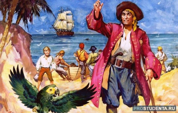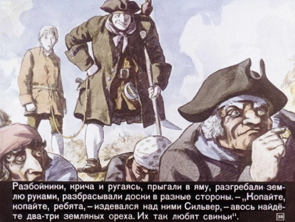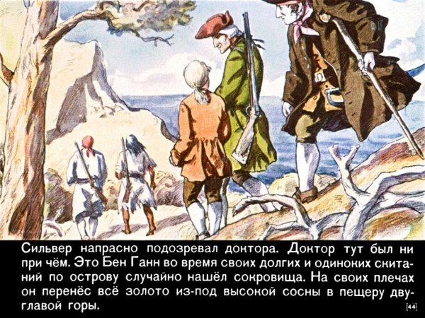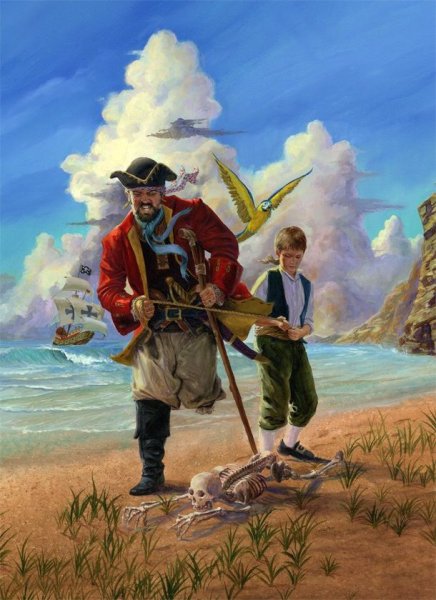 Иллюстрация к произведению "Остров сокровищ" - это визуальное отображение захватывающей истории о поиске сокровищ на таинственном острове. На картине можно увидеть главных героев романа - молодого Джима Хокинса и его необычного спутника, пирата Лонг Джона Сильвера. Представленный пейзаж создает атмосферу приключения и тайны, с деревьями, скрытыми золотыми кладами и потайными пещерами. Иллюстрация позволяет зрителю проникнуться эмоциями и воссоздать обстановку, описанную в произведении.