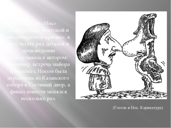 Гоголь "Нос" - это знаменитая повесть, написанная великим русским писателем Николаем Гоголем. Это удивительное произведение, которое смешивает элементы фантастики и сатиры. Главный герой повести - нос чиновника Ковалева, который неожиданно исчезает, оставив своего владельца в полном недоумении. Иллюстрации к этому произведению позволяют визуализировать мир, созданный Гоголем, и увидеть, как автор изобразил таинственное исчезновение носа. Благодаря иллюстрациям, читатель может глубже погрузиться в атмосферу повести и лучше понять ее смысл и идеи. Иллюстрации к "Носу" добавляют визуальную привлекательность и помогают визуально представить уникальные персонажи и события произведения. Они являются важным компонентом наслаждения произведением и способствуют его более полному восприятию.