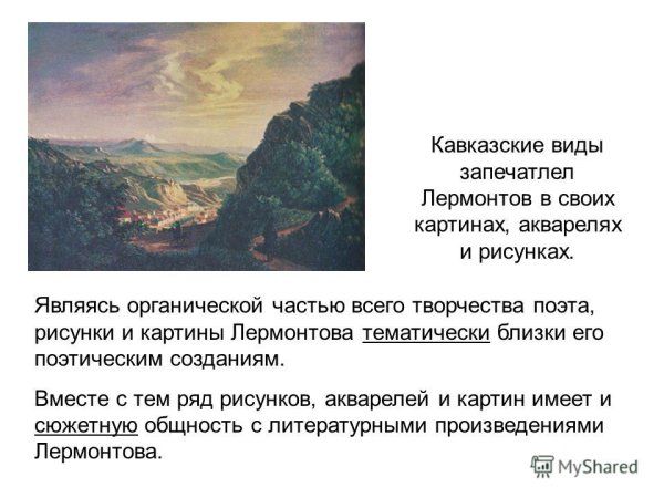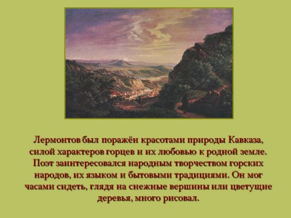 Иллюстрация к стихотворению Лермонтова "Кавказ" - это визуальное отображение яркого и мощного произведения русской литературы, которое олицетворяет красоту и величие Кавказа. В этом стихотворении поэт передает свои впечатления о горной местности, дикой природе и духе горцев. Иллюстрация может представлять собой живописный пейзаж с изображением горных вершин, зеленых долин, шумящих рек и цветущих полей. Она создает атмосферу загадочности и воздушности, отражая магию и притягательность Кавказа. Работа художника подчеркивает эмоциональную силу стихотворения, позволяя зрителю окунуться в мир горных просторов и почувствовать его внутреннюю силу. Эта иллюстрация станет прекрасным дополнением для любителей поэзии Лермонтова и тех, кто интересуется культурой и природой Кавказа.