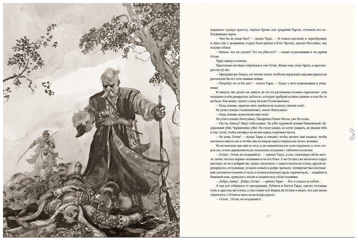 Иллюстрация к произведению "Тарас Бульба" представляет собой уникальный рисунок, который отражает главные моменты и настроение этого знаменитого произведения Николая Гоголя. Рисунок передает бурное драматическое действие и проникает в самую суть истории о славных казаках и их семейных ценностях. Он позволяет читателю визуализировать события и ощутить эмоции героев. Каждая линия и деталь на рисунке созданы с тщательностью и точностью, чтобы передать атмосферу времени и места, в которых происходят события произведения. Иллюстрация становится незаменимым спутником текста, погружает читателя в мир Тараса Бульбы и делает его чтение еще более увлекательным и насыщенным. Все это делает рисунок к произведению "Тарас Бульба" неотъемлемой частью его визуального воплощения и подчеркивает его значимость в литературной и художественной сферах.