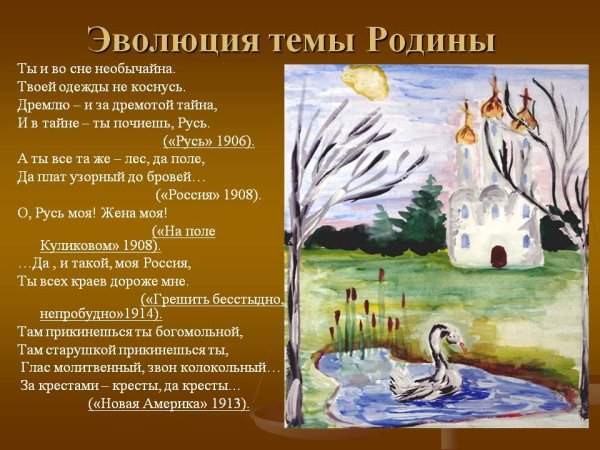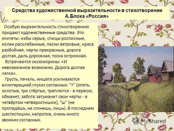 Блок "Россия" – это яркая иллюстрация к великому стихотворению, написанному великим русским поэтом. Это произведение проникнуто национальной гордостью и патриотизмом, освещая важнейшие исторические события и духовные ценности России. Блок воплощает в своем творчестве богатство и многогранность русской культуры, отражая её складчатую и сложную природу. Сочетание глубокой философии, мощной эмоциональности и изысканного языка делает эту иллюстрацию неповторимой и запоминающейся. Блок "Россия" – это ода нашей стране, ее истории и людям, истинно вдохновляющая и вызывающая сильные эмоции у читателей по всему миру.