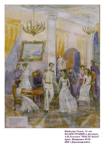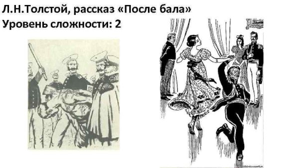 "Толстой после бала" - это иллюстрация к произведению Льва Николаевича Толстого, одного из самых известных русских писателей. В этом произведении автор изображает главного героя, который оказывается в эмоциональном состоянии после проведенного бала. Иллюстрация передает настроение и атмосферу события, заставляя читателя проникнуться тем, что переживает герой. Через метафорический образ Толстой передает сложность его внутреннего мира и душевное состояние, которые могут быть связаны как с радостью, так и с грустью или разочарованием. Эта иллюстрация является ярким примером художественного выражения через образы и символы, которые характерны для творчества Льва Толстого.