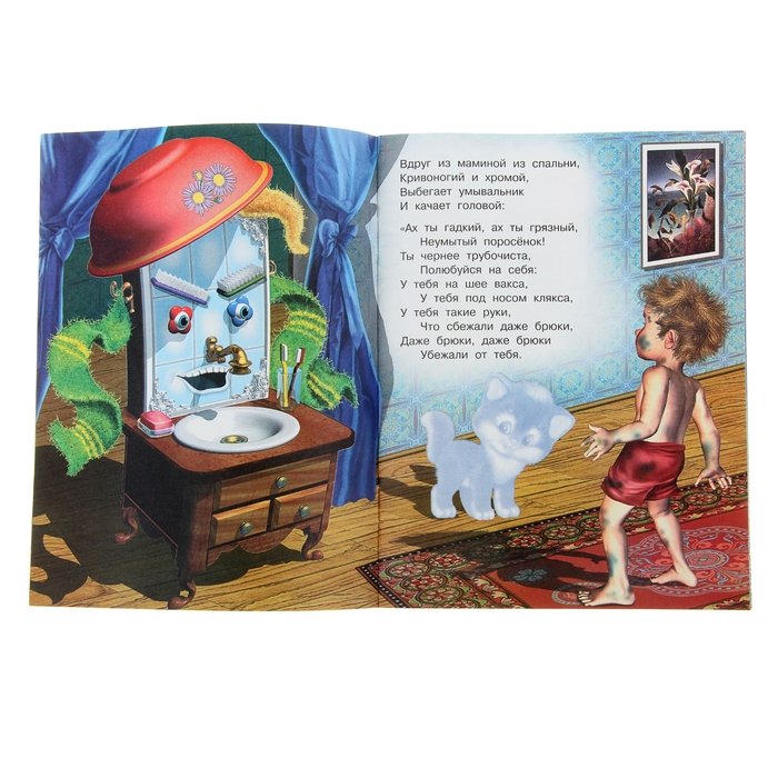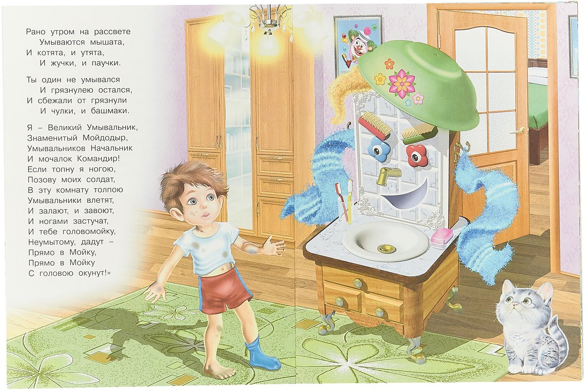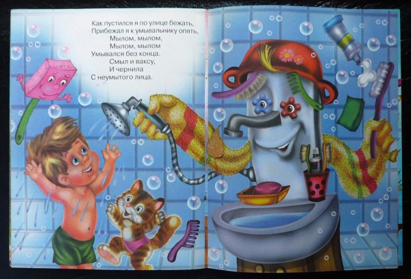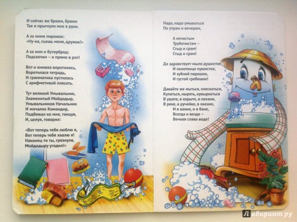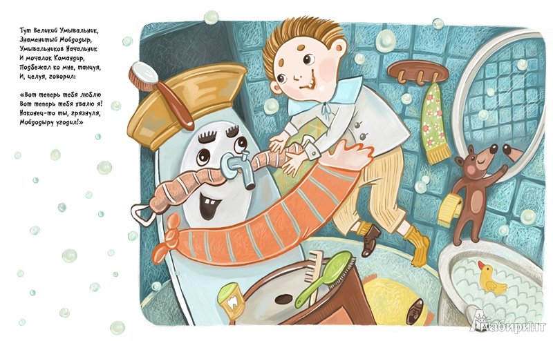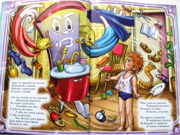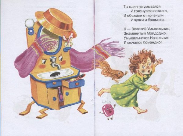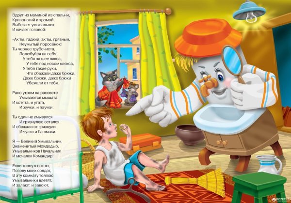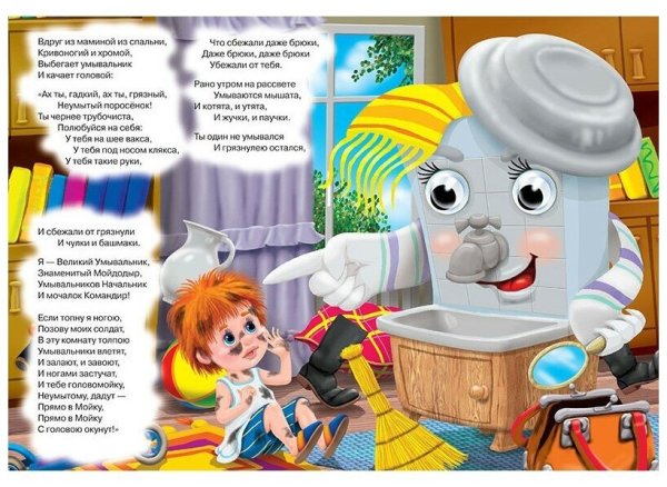Иллюстрация к стихотворению Чуковского "Мойдодыр" - это яркое и веселое изображение, которое передает атмосферу этой знаменитой детской сказки. На иллюстрации можно увидеть Мойдодыра - главного героя, который появляется перед читателями в виде добродушного и забавного мужчины с огромной щеткой. Вокруг него разворачивается сцена мытья тучек, и нарисованы дети, радостно принимающие участие в этом процессе. Отличительные особенности иллюстрации - это сочные цвета, живые выразительные лица персонажей и детализированные элементы, которые создают атмосферу игры и веселья. Эта яркая иллюстрация позволяет как взрослым, так и детям еще более полно погрузиться в мир сказки и насладиться ее содержанием.