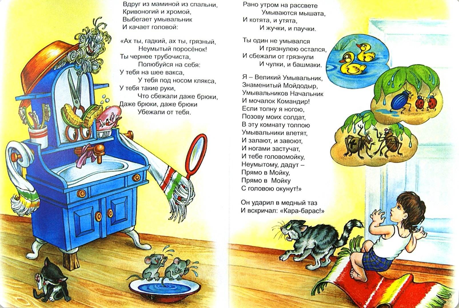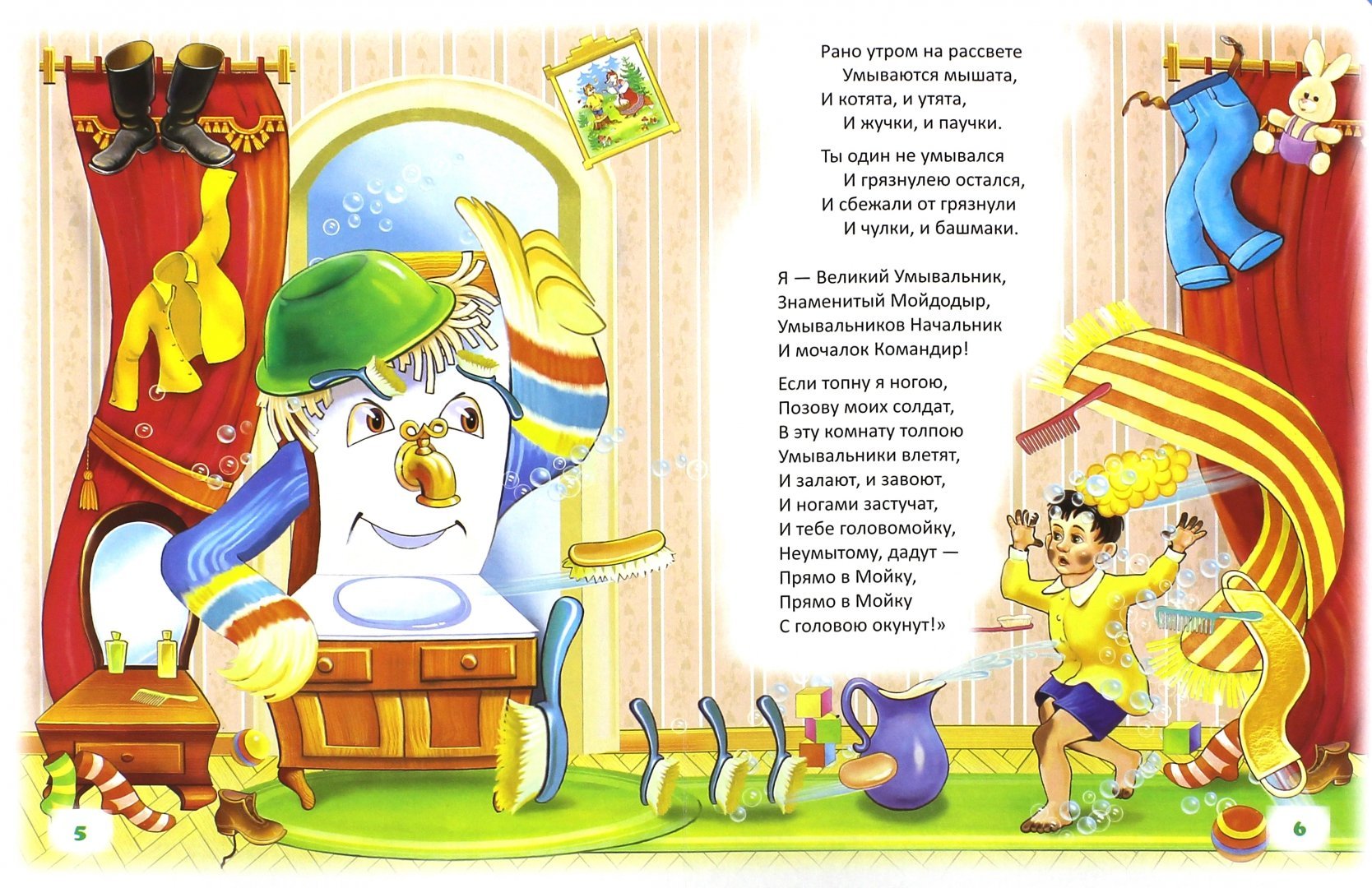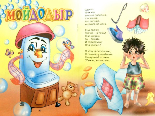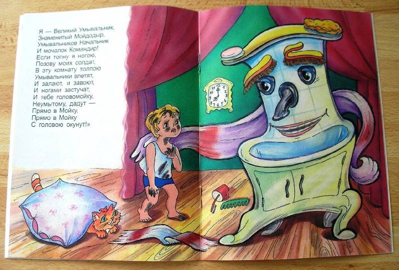 Иллюстрация к стихотворению Чуковского "Мойдодыр" - это яркое и веселое изображение, которое передает атмосферу этой знаменитой детской сказки. На иллюстрации можно увидеть Мойдодыра - главного героя, который появляется перед читателями в виде добродушного и забавного мужчины с огромной щеткой. Вокруг него разворачивается сцена мытья тучек, и нарисованы дети, радостно принимающие участие в этом процессе. Отличительные особенности иллюстрации - это сочные цвета, живые выразительные лица персонажей и детализированные элементы, которые создают атмосферу игры и веселья. Эта яркая иллюстрация позволяет как взрослым, так и детям еще более полно погрузиться в мир сказки и насладиться ее содержанием.