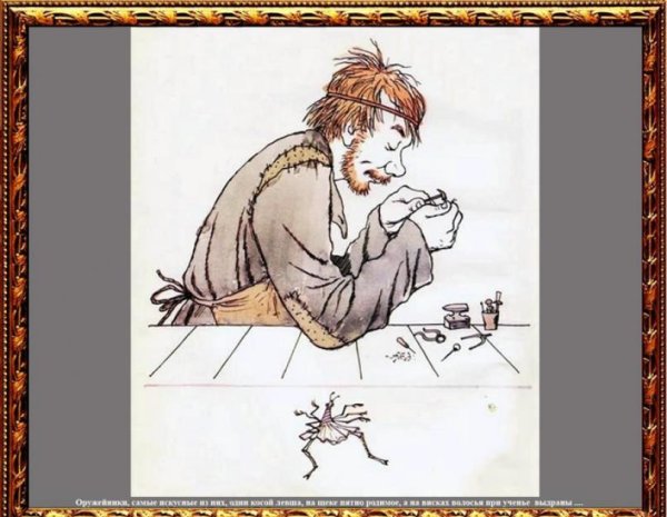 Иллюстрация к рассказу "Левша" представляет собой визуальное отображение ключевых моментов и образов, описанных в произведении. Нарисованная с любовью и творческим подходом, она погружает читателя в атмосферу повествования, передавая его настроение и эмоции. Используя различные стили и техники, художник создает уникальную картину, которая помогает визуализировать события и персонажей, позволяя нам лучше понять их мотивы и почувствовать глубину их внутреннего мира. Иллюстрация к рассказу "Левша" является неотъемлемой частью произведения, которая обогащает наше восприятие и добавляет новые измерения в историю.
