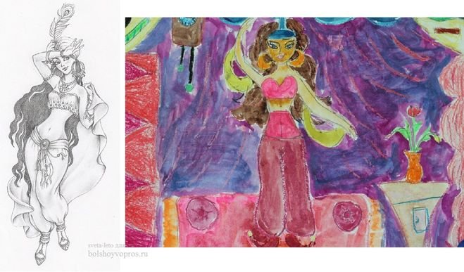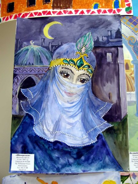Иллюстрация к произведению "Шехерезада" - это великолепное художественное изображение, которое передает весь магический и загадочный мир Востока. Оно позволяет погрузиться в таинственную атмосферу восточных сказок и проникнуться эмоциями и переживаниями героев. Используя яркие цвета, узоры и орнаменты, иллюстратор создает неповторимый образ Шехерезады и ее историй, окутанных дымом благовоний и пропитанных экзотическими запахами. Каждая деталь иллюстрации тщательно проработана, чтобы передать богатство восточной культуры и волшебство, которое оживает на страницах произведения. Эта иллюстрация является настоящим произведением искусства, способным перенести читателя в другой мир и погрузить его в волшебные истории Шехерезады.
