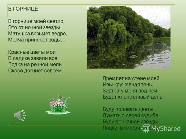 Иллюстрация к стихотворению "Рубцов в горнице" является непременным элементом, позволяющим углубить восприятие произведения и визуально передать его суть. Рубцы на теле главного героя символизируют его бурную и сложную жизнь, полную испытаний и травм. На фоне горницы, которая может напоминать ощущение уединения и печали, рубцы выглядят еще более выразительно. Иллюстрация привлекает внимание зрителя и вызывает эмоциональный отклик, помогая погрузиться в мир стихотворения и пережить его эмоции в полной мере.