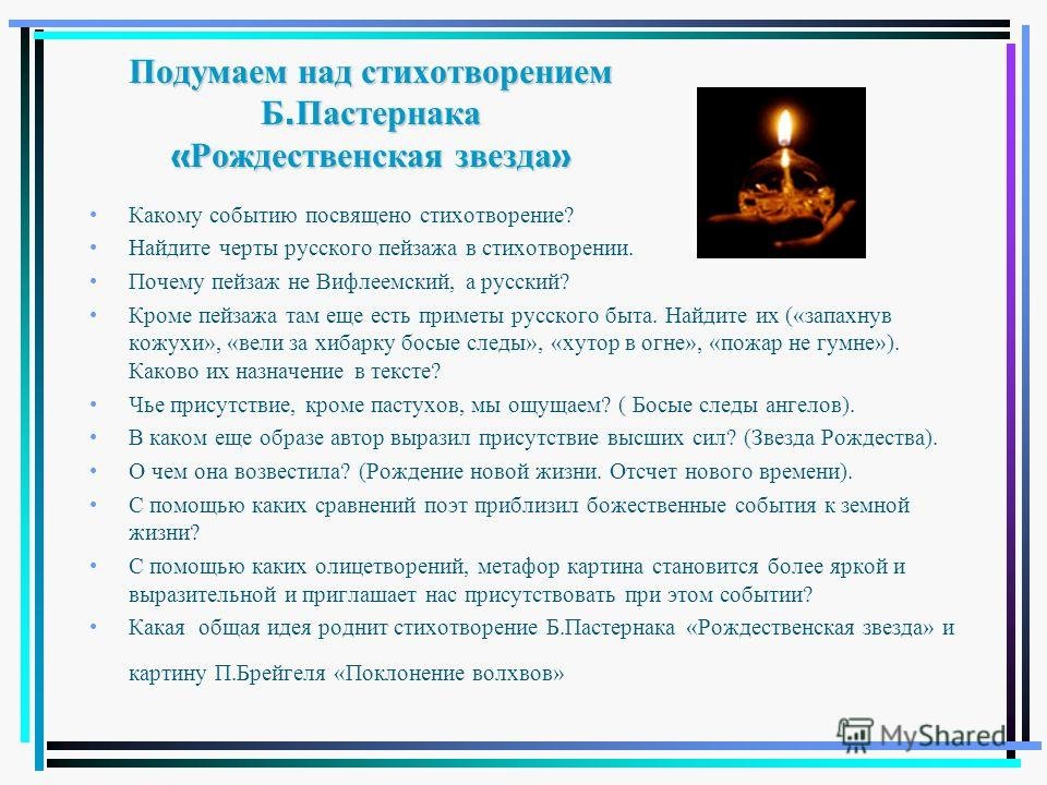 Иллюстрация к стихотворению "Рождественская звезда" Пастернака – это непревзойденное произведение изобразительного искусства, которое воплощает в себе всю глубину и магию рождественских праздников. Нежные и яркие цвета, проникновенность композиции и утонченная детализация создают удивительную атмосферу таинственности и ожидания. Иллюстрация передает образ звезды, сияющей в ночном небе, и ее символическое значение – свет и надежду, которые приходят вместе с Рождеством. Она вызывает в нас чувство радости и восхищения перед величием и загадочностью этого праздника, а также напоминает о важности веры, любви и согласия в мире. Эта иллюстрация стала настоящим произведением искусства, способным захватить наши сердца и перенести нас в самую суть рождественского волшебства.