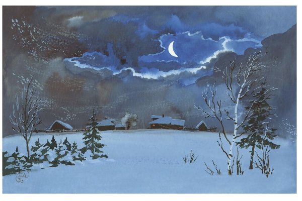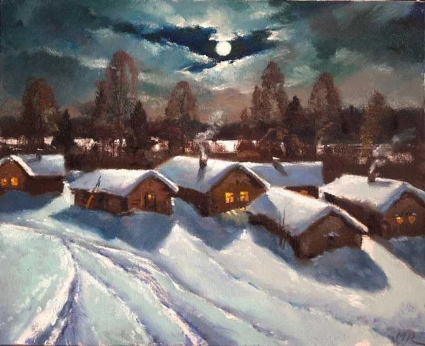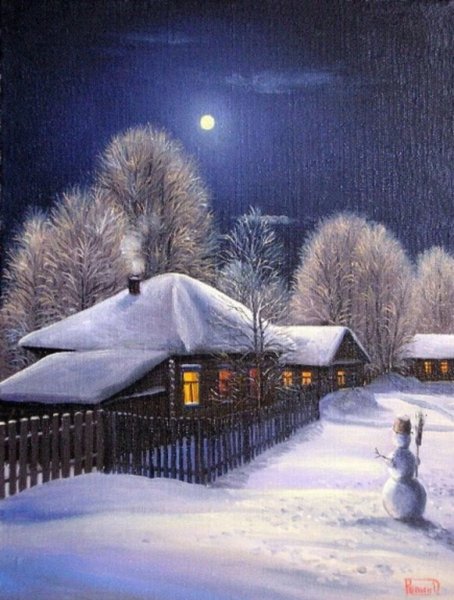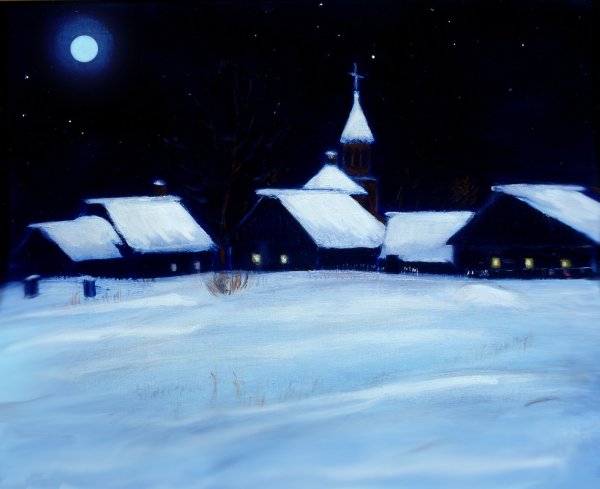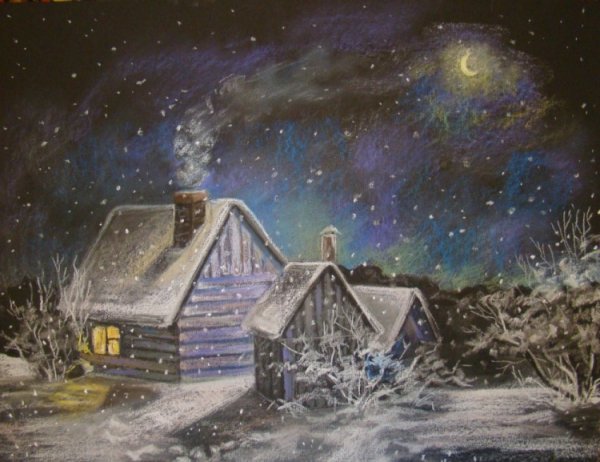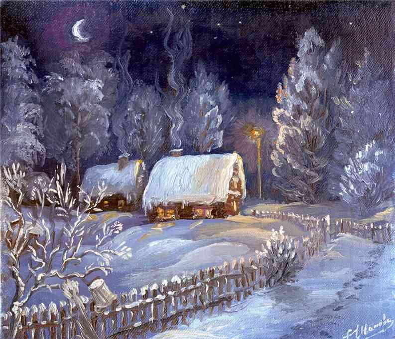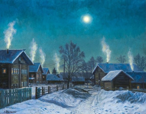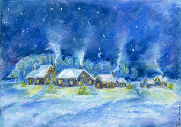Мы погружаемся в атмосферу уютной зимней ночи в деревне, где все вокруг окутано магической тишиной. На иллюстрации перед нами открывается сказочный пейзаж, где снежные холмы и лесные поляны усыпаны блестящим белым покровом. Вдалеке виднеются деревенские избы с дымящимися трубами, создавая ощущение тепла и уюта. На небе ярко сияют звезды, освещая окрестности своим нежным светом. Вдали проступает силуэт одинокого соснового леса, словно стражник, наблюдающий за всем происходящим. Все вокруг спокойно и безмятежно, будто время замедлило свой бег, создавая иллюзию вечности этой зимней ночи в деревне.