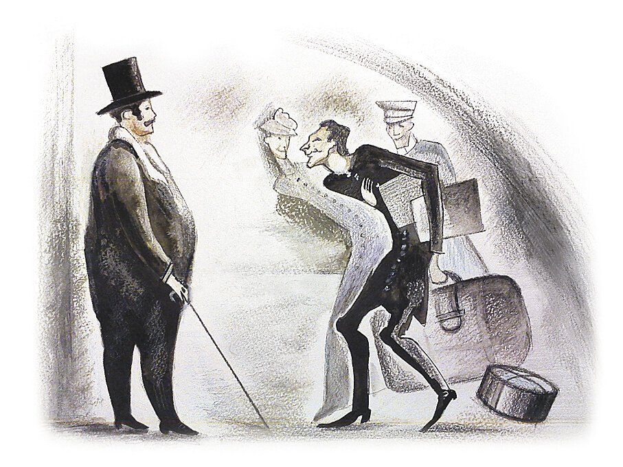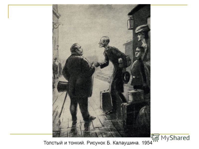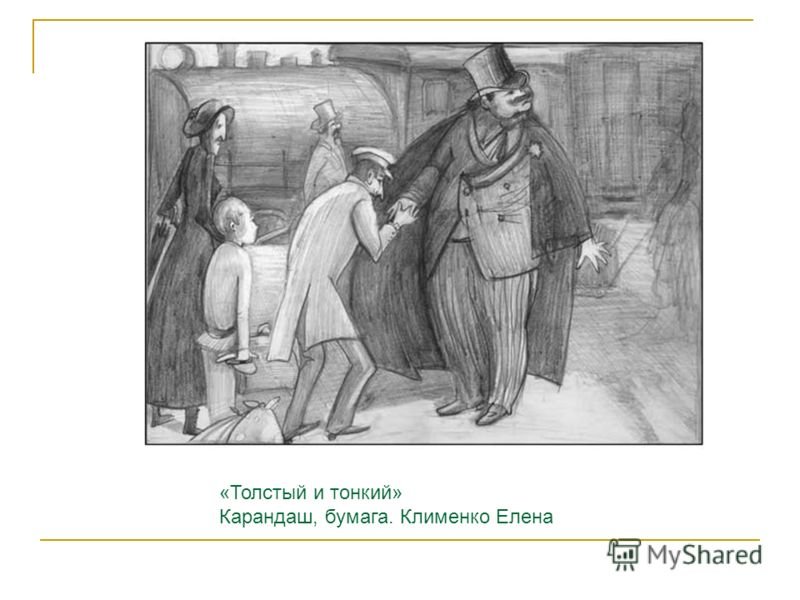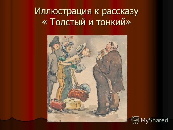 Толстый и тонкий - это замечательная иллюстрация к захватывающему рассказу, который описывает две параллельные истории главных героев. Главный герой, Толстый, изображен как могучий и сильный человек с широкими плечами и огромными руками, что отражает его физическую силу и бесстрашие. В то же время, Тонкий герой изображен как худой и немного слабый человек, но с ярким и умным взглядом, что отражает его интеллект и аналитические способности. Иллюстрация передает эмоции и настроение рассказа, создавая впечатление о сильной дружбе и сопереживании между этими двумя контрастными персонажами.