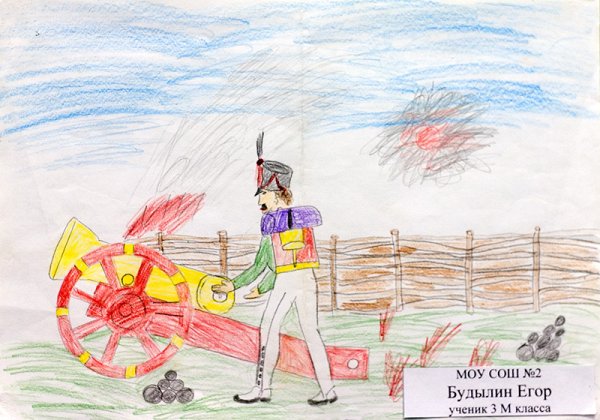 Иллюстрация к стихотворению "Бородино" ярко и эмоционально передает атмосферу сражения, не требуя присутствия человеческих фигур. В ней главным образом акцентируется красочность природы, которая свидетельствует о неизбежности и жестокости войны. Мощные и зловещие облака, густые клубы дыма, поражающие глаз всполошенные птицы - все это создает напряженную атмосферу и подчеркивает значимость событий, происходящих на поле битвы. Без присутствия человека иллюстрация передает трагедию и разрушение, вызывая у зрителя мощное впечатление и задумчивость.