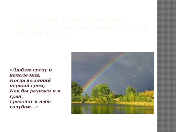 Если вы ищете иллюстрацию к знаменитому стихотворению Федора Тютчева "Люблю грозу в начале мая", то вы попали по адресу. Это известное произведение русской классики, в котором поэт описывает свою страсть к непредсказуемому и мощному природному явлению - грозе. Картина, сопровождающая эти строки, должна передавать атмосферу загадочности и силы, которые присущи этому времени года и самой грозе. Величественные облака, молнии, дождь и разряды грома - все это яркие и неповторимые элементы, которые можно передать на художественном полотне. Ваше воображение позволит вам создать идеальную иллюстрацию, которая будет сочетаться с поэзией Тютчева и захватывать взгляды зрителей.