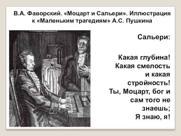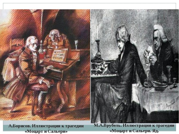 Моцарт и Сальери - два великих композитора, чьи таланты и музыка оставили незабываемый след в истории классической музыки. Их взаимоотношения всегда вызывали интерес у искушенных меломанов и любителей искусства. Иллюстрации к произведению "Моцарт и Сальери" позволяют увидеть мир, в котором существовали эти два гениальных музыканта, раскрыть суть их творчества и почувствовать атмосферу времени, в котором они жили и работали. Каждая иллюстрация передает особую эмоциональность и глубину произведения, позволяя зрителю проникнуться его смыслом и обратиться к самим композиторам с новым, глубоким пониманием и восхищением.