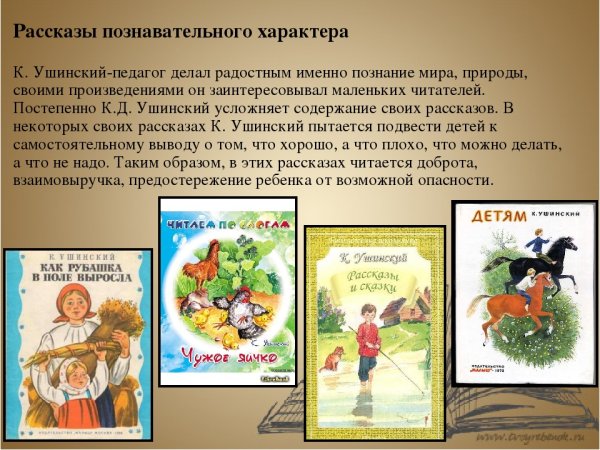 Коллекция иллюстраций к произведениям Ушинского для детей – это уникальное творческое сочетание литературы и изобразительного искусства, созданное специально для маленьких читателей. Эти прекрасные иллюстрации ярко передают атмосферу и сюжеты произведений Ушинского, погружая ребят в мир приключений, знаний и добрых уроков. Каждая страница оживает благодаря ярким краскам, детальной проработке и выразительности персонажей. Иллюстраторы сумели сделать так, чтобы каждый рисунок стал настоящим дополнением к тексту, помогая маленьким читателям лучше понять и воспринять сюжет произведений. Благодаря этой коллекции иллюстраций, дети смогут еще глубже погрузиться в мир Ушинского и полностью насладиться его произведениями, развивая свою фантазию и эмоциональное восприятие.