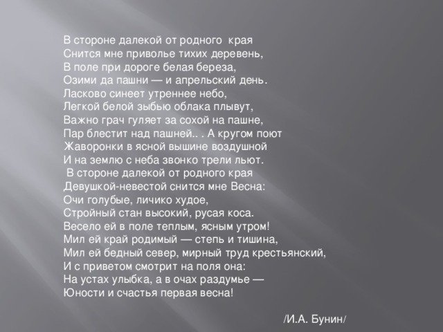 Иллюстрации к стихотворению Бунина "В стороне далекой от родного края" — это прекрасное дополнение к этому известному произведению. Каждая иллюстрация передает атмосферу и настроение стихотворения, улавливая тонкие эмоциональные нюансы. Они помогают читателю визуализировать описываемые образы и перенестись в мир поэзии. Качественно выполненные иллюстрации добавляют глубину и интенсивность к письменным словам, создавая цельное художественное произведение, которое привлечет внимание как любителей литературы, так и изобразительного искусства. Иллюстрации к стихотворению Бунина в стороне далекой от родного края — это непременный акцент, который делает чтение еще более ярким и запоминающимся.