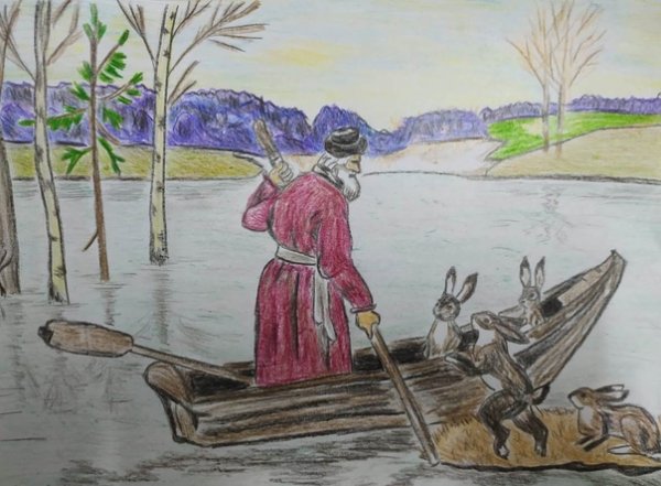 Иллюстрация к рассказу "Дед Мазай и зайцы" ярко иллюстрирует сюжетную линию произведения, заставляя читателя окунуться в мир приключений и неожиданных поворотов. На картине мы видим дедушку Мазая, простого и добродушного старика, который, окруженный игривыми зайцами, с улыбкой на лице раздает им свои последние морковки. Образ деда Мазая передан с большой детализацией: его мудрые глаза, седые волосы и мягкие, почти добродушные черты лица создают ощущение комфорта и тепла. В то же время, кроликам удалось изобразить ловкость и быстроту в их движении и выразительной позе. Иллюстрация прекрасно передает атмосферу доброты, радости и взаимопонимания, которые характеризуют этот уникальный рассказ. Она вызывает желание погрузиться в историю и узнать, какие еще приключения и необычные события ожидают читателя.