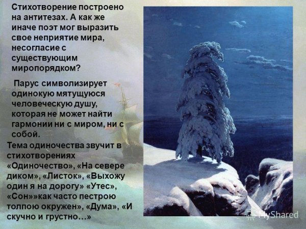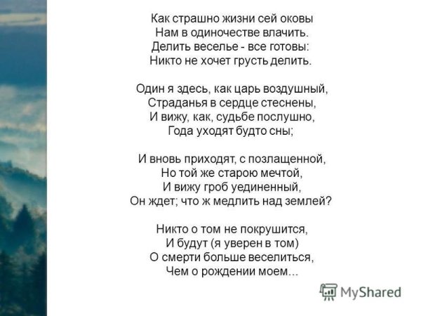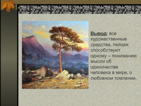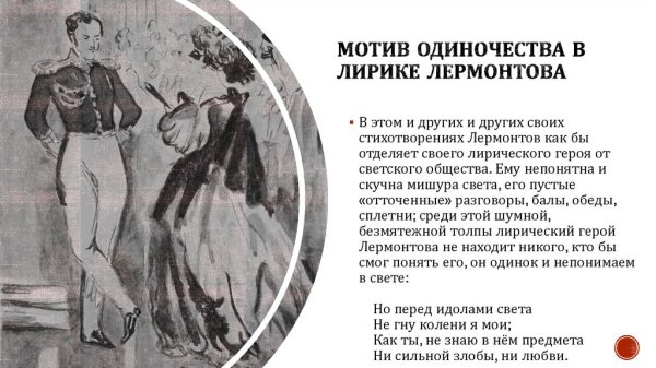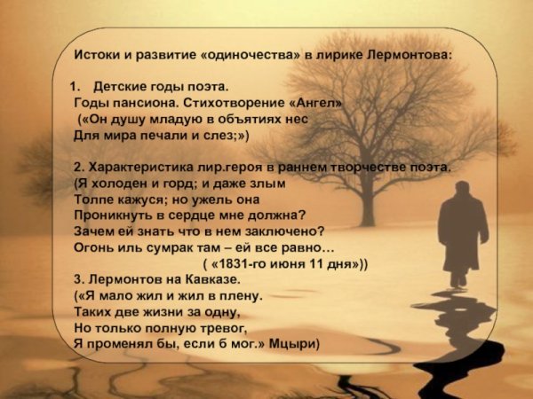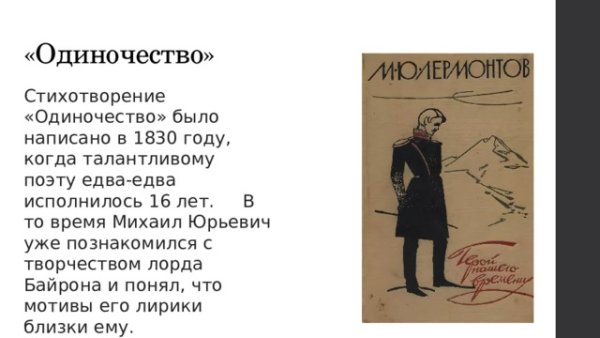Иллюстрация к стихотворению Лермонтова "Одиночество" представляет собой глубокое и многогранное произведение искусства, передающее самую суть одиночества. На рисунке изображена фигура одинокого человека, склонившегося над озером или просто в своих мыслях. Его поза выражает утрату, печаль и завороженность, а фон окружающего пространства символизирует безграничность этого состояния. Каждая деталь и каждый штрих иллюстрации пропитаны тоской и грустью, создавая особую атмосферу, которая отражает внутреннее состояние героя стихотворения и заставляет зрителя задуматься о смысле его существования.