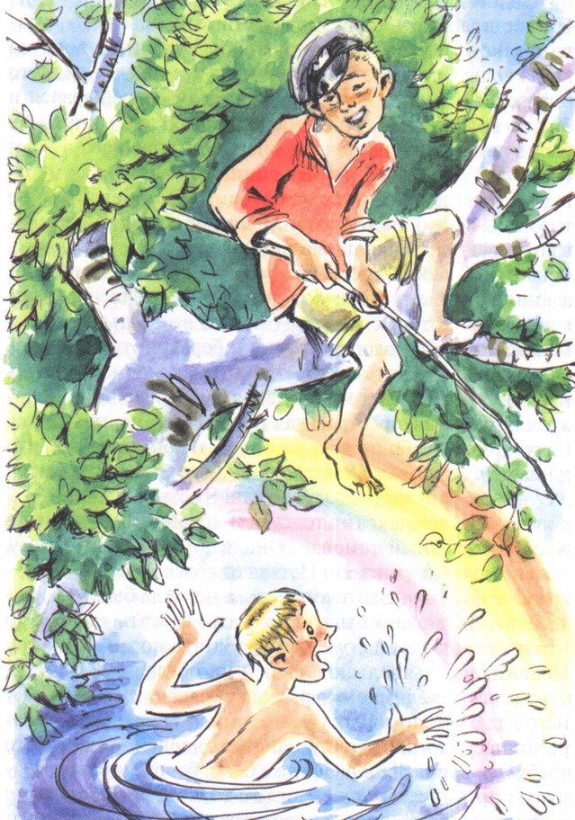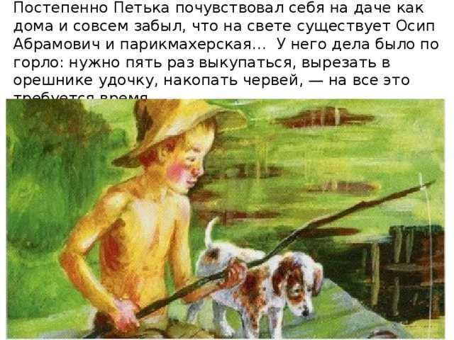 Иллюстрация "Петька на даче" - это яркий и живописный образ, оживляющий рассказ о приключениях главного героя. На этой иллюстрации мы видим Петьку, веселого и немного шаловливого мальчика, который проводит свое время на даче. Он окружен зеленью сада, сочной травой и цветущими цветами, что создает атмосферу летнего отдыха и природной красоты. Возможно, Петька играет под деревом или собирает ягоды, показывая нам его беззаботное и радостное настроение. Иллюстрация привлекает внимание своими яркими цветами и детализацией, которые передают атмосферу дачного уединения и неизменной детской радости. Эта иллюстрация идеально подходит для оформления рассказа о приключениях Петьки на даче, заставляя читателя сразу погрузиться в атмосферу веселых и незабываемых моментов этой истории.