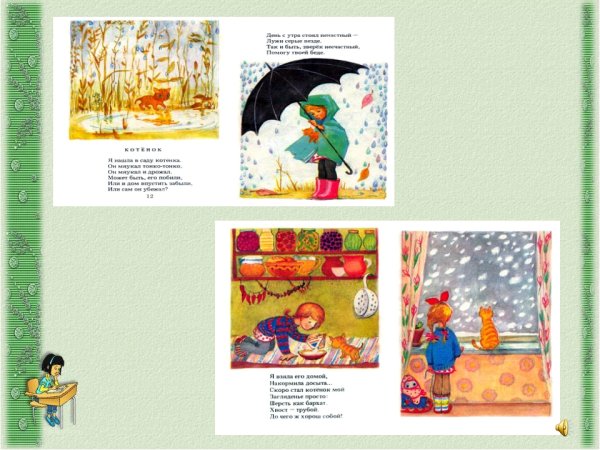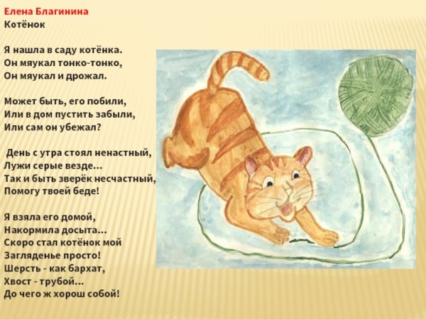 Великолепный котенок, оживший на страницах стихотворения Благининой, вдохновляет и пленяет своим неповторимым обаянием. Иллюстрации, созданные с любовью и тонким вкусом, отражают всю милоту и игривость этого персонажа. Каждая линия и цвет подчеркивают его нежность и жизнелюбие. Они помогают читателю окунуться в мир стихотворения и почувствовать всю прелесть и радость, которые приносит этот маленький котенок. Эти иллюстрации безусловно являются идеальным дополнением к стихотворению Благининой и не оставят равнодушными ни детей, ни взрослых.