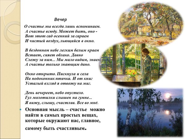 Иллюстрация к стихотворению Бунина "Вечер" является воплощением нежности и таинственности этого произведения. Взглянув на картину, мы ощущаем атмосферу умиротворенности и спокойствия, которую поэт передал в своих строках. Глубокий фиолетовый цвет неба и рассеянные звезды создают ощущение сказочности и магии, словно мы перенеслись в параллельный мир, где время останавливается. Лунный свет, проникающий сквозь деревья, раскрывает перед нами загадочную красоту природы и наполняет наши сердца тихим восторгом. Иллюстрация к стихотворению Бунина "Вечер" – это истинное художественное произведение, которое погружает нас в атмосферу романтики и возвышенности.