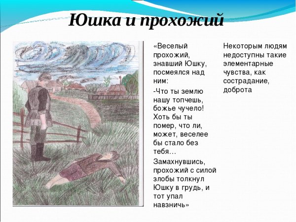 Иллюстрация к произведению "Юшка" - это визуальное отображение главного героя и его приключений из одноименной повести. На этой яркой иллюстрации можно увидеть, как Юшка, маленький и смелый мальчик, встречается со своими друзьями и справляется с различными испытаниями, которые выпадают ему на пути. Графический образ персонажа передает его непосредственность, радость и интерес к окружающему миру. Красочные детали и динамичность иллюстрации помогают читателю лучше погрузиться в атмосферу произведения и сопереживать герою. Иллюстрация к произведению "Юшка" отлично дополняет текстовую часть рассказа, делая чтение более увлекательным и запоминающимся.