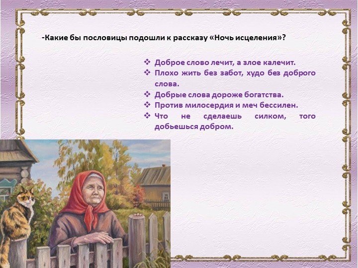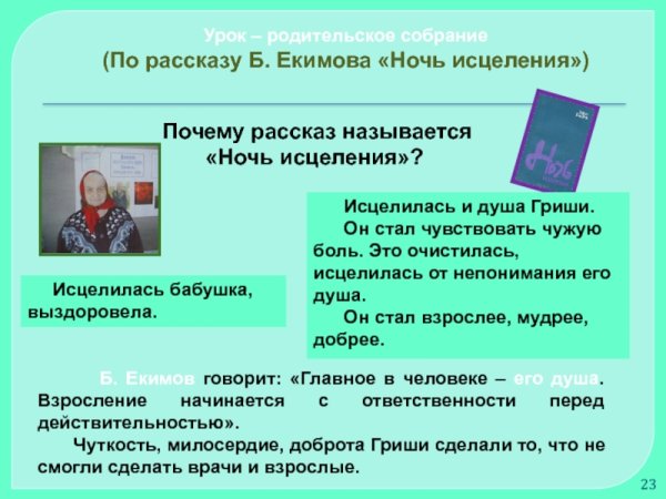 Иллюстрация к рассказу "Ночь исцеления" – это визуальное отображение главной темы произведения, которая заключается в искуплении и возрождении. На картине изображена ночная ландшафтная сцена с яркой луной, окутанной таинственным сиянием. Центром композиции является фигура человека, простирающего руки к небу, символизируя желание искать и получать исцеление и покой в этой темной и загадочной ночи. В окружении природных элементов, таких как цветы, деревья и река, иллюстрация передает атмосферу спокойствия и приближающегося исцеления. Гармоничные цвета и мягкие переходы делают изображение притягательным для зрителя и помогают передать глубинный смысл рассказа "Ночь исцеления".