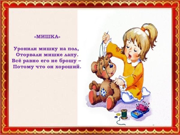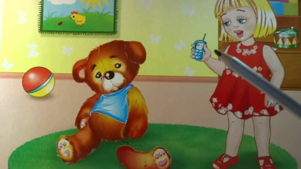 Иллюстрация к стихотворению "Мишка" Эдуарда Успенского представляет собой яркую и веселую картину, которая отражает основные события и настроение произведения. На рисунке изображен милый и пушистый мишка, который играет вместе с детьми: он прыгает, танцует и шалит на лугу. Его улыбающееся лицо и игривый взгляд передают образ дружелюбного и веселого персонажа. Яркие цвета и детализированные элементы создают атмосферу радости и восторга, а также придают картине особый художественный шарм. Иллюстрация оживляет стихотворение и помогает детям лучше представить себе главного героя и его забавные похождения.