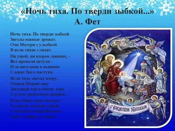 Иллюстрация к стихотворению "Рождество Блока" - это визуальное произведение искусства, которое передает атмосферу и смысл знаменитого стихотворения Александра Блока. Она погружает зрителя в мир рождественской ночи, полной таинственности и чуда. На иллюстрации можно увидеть изображение заснеженного города, церквей с куполами, ёлок, людей, собравшихся на праздничные мероприятия. В каждой детали присутствует особая символика и эмоциональная напряженность, что позволяет почувствовать все тонкости и глубину текста стихотворения. Иллюстрация к стихотворению "Рождество Блока" является неотъемлемой частью его интерпретации и способствует более полному пониманию и восприятию произведения.