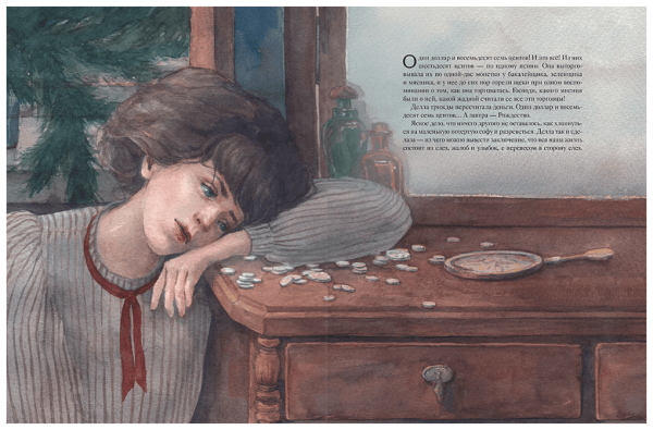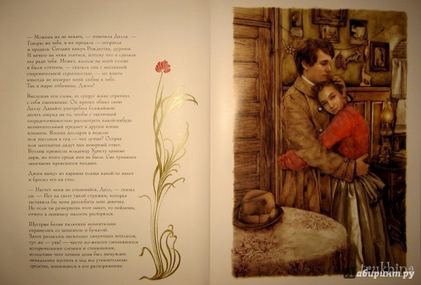 "О Генри" - классик американской литературы, автор необычных и остроумных рассказов. Одним из них является "Дары волхвов", который поражает своей неожиданной концовкой. Рассказ рассказывает о юном парне по имени Делла, который собирается подарить своему мужу Джиму особенный подарок на Рождество. Стремясь найти достойный презент, Делла продает свои длинные красивые волосы, чтобы купить часы для любимого. Но приходит время обмена подарками, и выясняется, что Джим продал свои часы, чтобы купить расческу для Деллы. В этот момент они понимают, что самоотверженная любовь и жертвы гораздо важнее материальных подарков. Иллюстрации к этому рассказу добавляют особую глубину и эмоциональность, позволяя читателю в полной мере погрузиться в историю и прочувствовать ее истинное значение."
