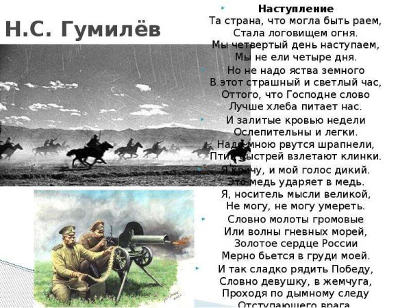 Иллюстрации к стихотворению "Наступление" Гумилева - это удивительное сочетание слов и образов, воплощенных в изображениях. Каждая иллюстрация как бы приглашает зрителя в мир поэта, в его эмоции и мысли. Они передают силу и напряженность стихотворения, позволяя читателю глубже погрузиться в его суть. Картины, нарисованные в ярких и выразительных тонах, отражают тему наступления и сопровождают текст своими образами. Иллюстрации создают атмосферу, раскрывающую образы, созданные Гумилевым, и помогают почувствовать всю силу его стихотворения "Наступление".