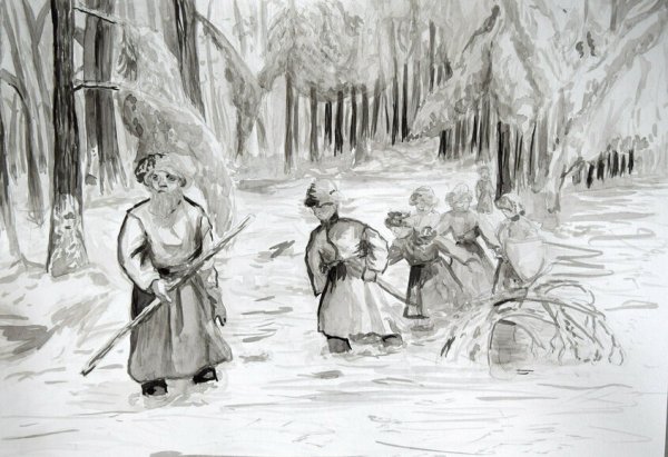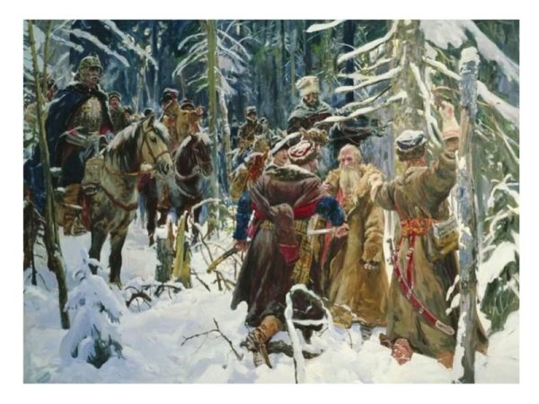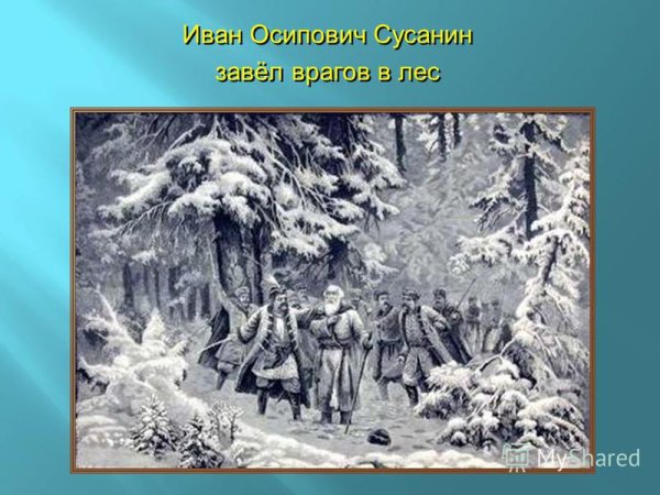 Иллюстрация к произведению "Иван Сусанин" - удивительное произведение искусства, которое воплощает в себе глубину и эмоциональность этой знаменитой русской легенды. Картина переносит нас во времена смутного периода русской истории, когда Иван Сусанин стал символом преданности своей родине. На иллюстрации мы видим изображение Ивана Сусанина, обычного крестьянина, сидящего на берегу реки, окруженного пейзажем природы. Его лицо выражает мудрость и смирение, а его глаза полны непоколебимого патриотизма и силы духа. Картина передает не только героизм Ивана Сусанина, но и его преданность России, что делает ее поистине вдохновляющей и значимой для всех поколений. Эта иллюстрация является прекрасным воплощением духа истории, подчеркивая важность любви к родине и смелости в сложные времена.