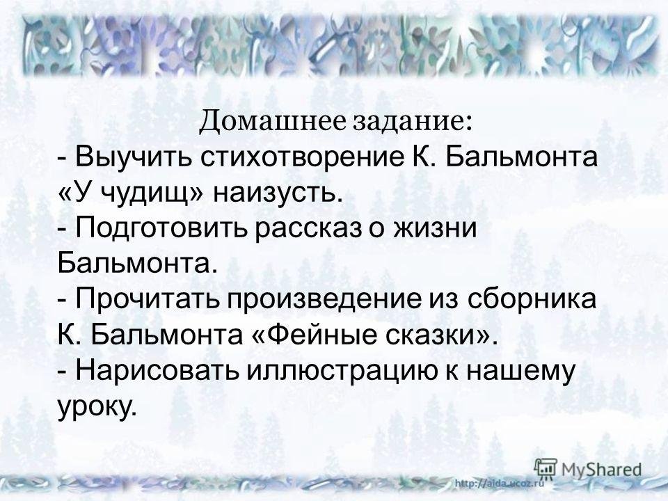 Иллюстрации к стихотворению Бальмонта "У чудищ" являются потрясающим визуальным дополнением к этому фантастическому произведению. Каждая иллюстрация передает атмосферу таинственности и ужаса, которые описываются в стихах. Они позволяют зрителю перенестись в мир невероятных существ и ощутить на себе всю мощь этих чудовищ. Разнообразие цветов и форм, использование техники реализма и фантастики создают неповторимую картину, которая захватывает воображение и не отпускает до последней строчки стихотворения. Иллюстрации к стихотворению Бальмонта "У чудищ" являются настоящим произведением искусства и отлично сочетаются с текстом, погружая читателя в мир фантазий и мистических событий.