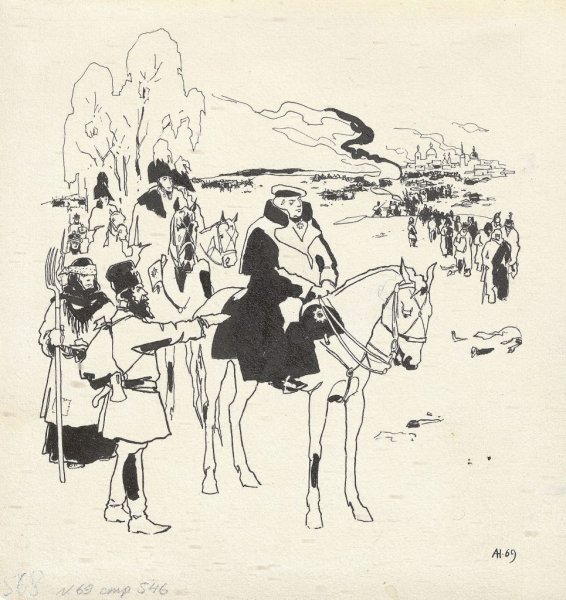 Иллюстрация к произведению "Война и мир" - это визуальное отображение эпического романа Льва Толстого, который величественно описывает события, происходившие во время войн и периода мира в России начала XIX века. Иллюстрация может выражать глубокий символизм и передавать настроение произведения, отражая его ключевые сюжетные линии и характеры. Будь то изображение битвы с масштабными армиями или интимная сцена между главными героями, иллюстрация к "Войне и миру" должна умело передавать сложность и противоречивость человеческих отношений, а также величие и жестокость войны. Она должна быть достаточно выразительной, чтобы заинтересовать зрителя и заставить его задуматься над глубиной событий, описанных в этом классическом произведении литературы.