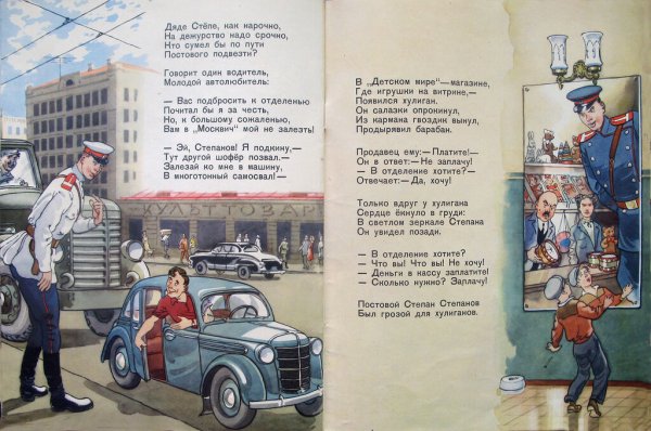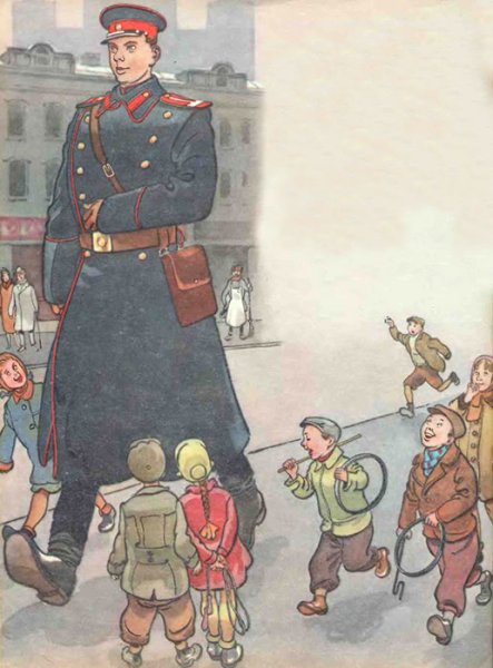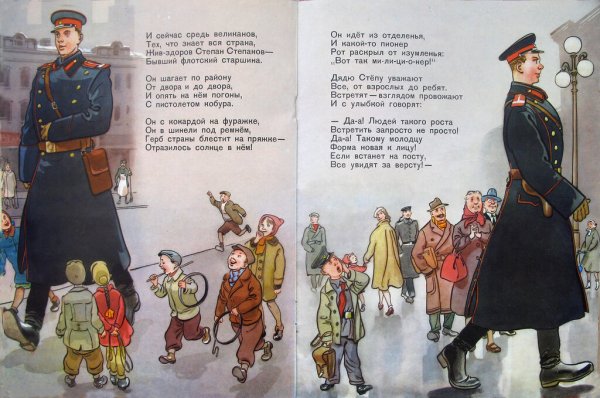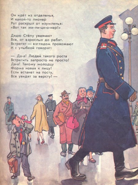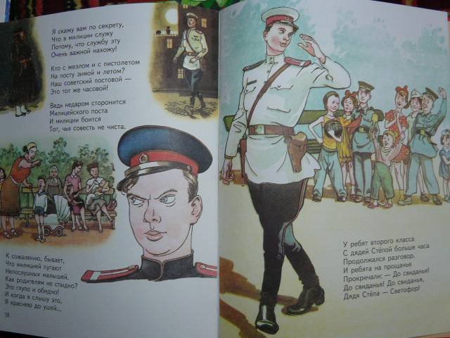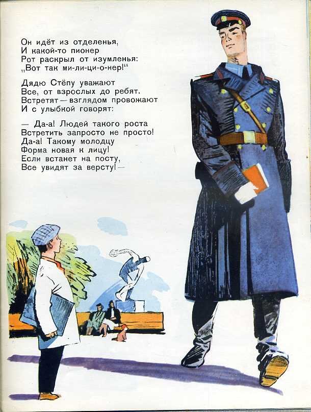 Иллюстрация к стихотворению "Дядя Степа милиционер" погружает нас в захватывающий и полный приключений мир, наполненный юмором и неожиданностями. На картине мы видим дядю Степу, солидного и усатого милиционера, в форме, с гордо поднятой головой и серьезным выражением лица. Он стоит рядом с своим верным партнером - полицейской собакой, которая, кажется, не меньше его по размерам. Задний план иллюстрации заполняют забавные ситуации, описывающие различные приключения и преступления, с которыми дядя Степа сталкивается в своей работе. Все это создает атмосферу позитива, веселья и настоящего детективного настроения, открывая для нас новый мир приключений и опасностей, в которые вовлечены наши главные герои. Иллюстрация к стихотворению "Дядя Степа милиционер" является прекрасным способом визуализации и оживления этого увлекательного текста, отражая его смысл и настроение.