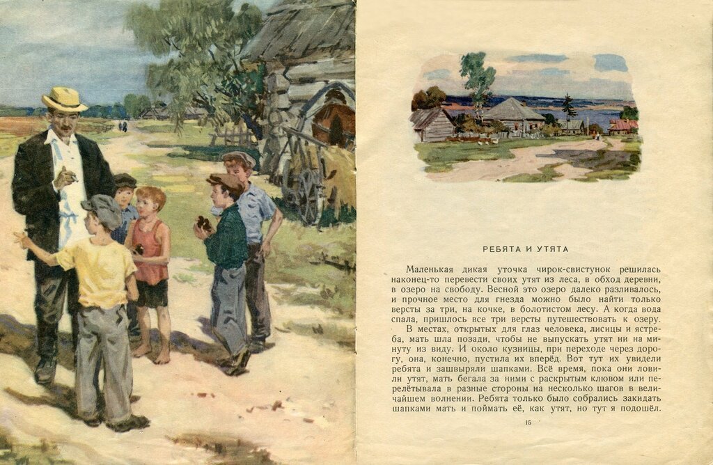 Рассказ "Ребята и утята" - это прекрасная детская история, написанная замечательным писателем Корнем Ивановичем Чуковским. В ней рассказывается о встрече группы маленьких ребят с утятами, которые оказались потерянными и беспомощными. Дети сразу же сжалились над пушистыми созданиями и решили помочь им. Они сделали уютное помещение для утят и начали заботиться о них, кормя их и играя с ними. Ребята проявили заботу и сострадание, и в итоге утята обрели семью и радость. Эта прекрасная иллюстрация отлично передает атмосферу доброты и любви к животным, которая является одной из ключевых тем в рассказе "Ребята и утята".