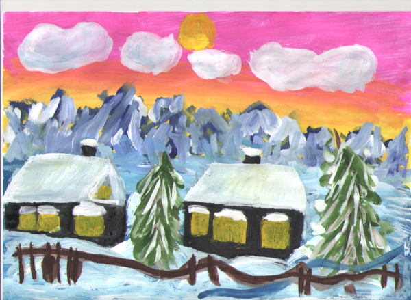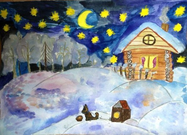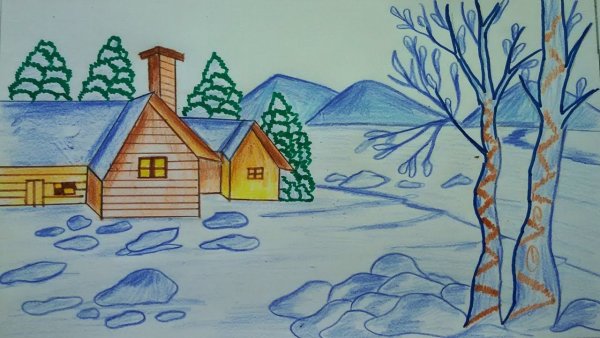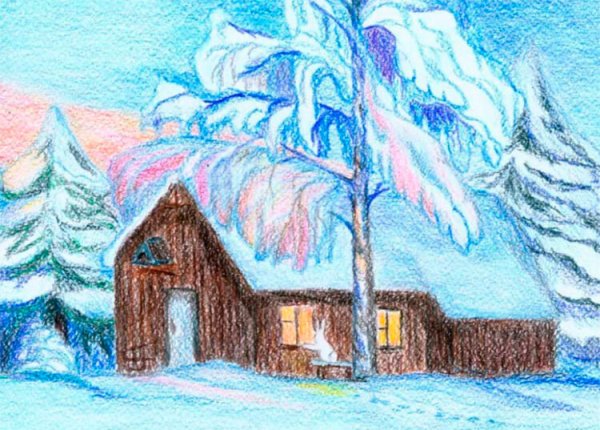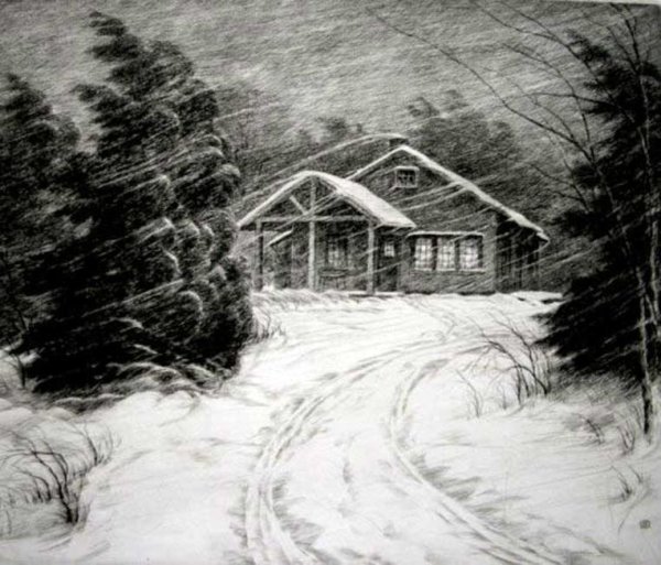 Иллюстрация к стихотворению "Зимний вечер" выполнена нежными и тонкими линиями карандаша, которые передают атмосферу зимней сказки. На рисунке изображено заснеженное пейзажное пространство, где вдалеке виднеется одинокое дерево с обледеневшими ветками. В центре композиции расположен уютный домик с дымящимся камином, который создает ощущение тепла и уюта. Нежные штрихи карандаша передают холодную зимнюю палитру, оттенки бледно-голубого и серого придают образу особую меланхоличность. Иллюстрация к стихотворению "Зимний вечер" карандашом призывает зрителя остановиться на мгновение и окунуться в мир тишины и загадочности зимней ночи.