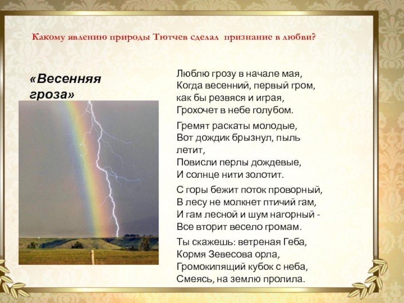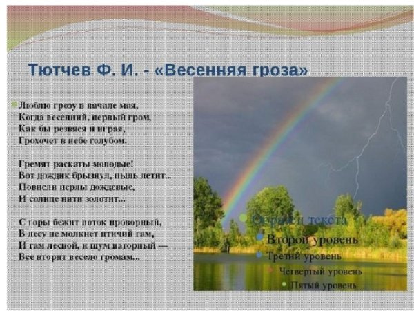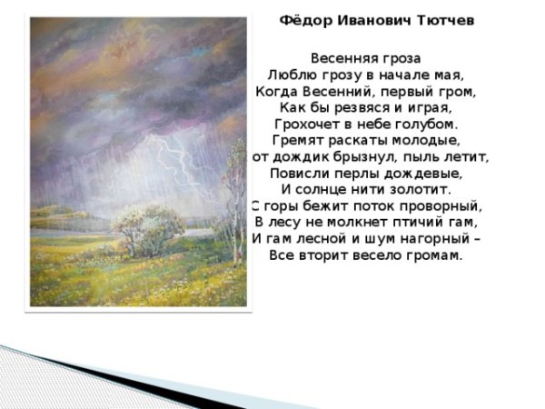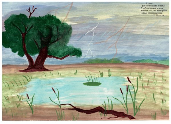 Иллюстрация к произведению Федора Тютчева "Весенняя гроза" воссоздает атмосферу приближающейся бури и проникает зрителя своей напряженностью и динамикой. На картине изображена живописная пейзажная сцена, где тучи надвигаются с угрозой на небо, сотрясая его мощными громовыми раскатами. Вихрь ветра развевает листву деревьев, создавая ощущение силы и необузданности стихии. Оранжевые молнии пронзают небо, придавая образу энергичность и яркость. Все это помогает передать зрителю эмоциональную составляющую произведения, позволяя ему погрузиться в атмосферу весенней грозы и пережить ее сильные эмоции на холсте или листе бумаги. Иллюстрация к "Весенней грозе" Федора Тютчева - это визуальное отражение мощи природы и ее способности вызывать в нас настоящие чувства и ощущения.