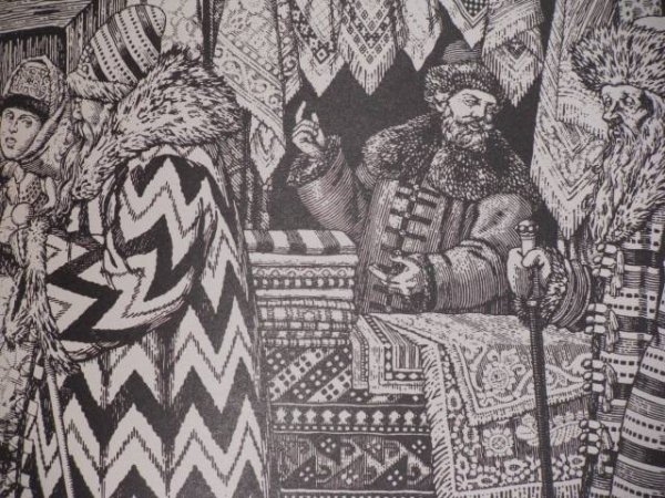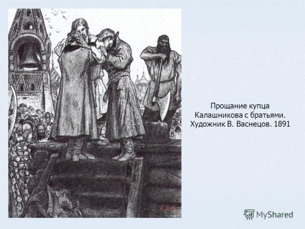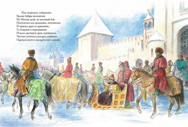 Данная иллюстрация является идеальным компаньоном к песне о купце Калашникове. Она воплощает атмосферу и настроение произведения, передавая его сильные эмоции и глубокий смысл. Используя различные художественные приемы, такие как яркие цвета, детализированные элементы и выразительные композиционные решения, иллюстрация создает живой и неповторимый образ купца Калашникова, отражая его трудолюбие, борьбу и стремление к достижению успеха в мире коммерции. Безусловно, данная работа привлечет внимание зрителя и поможет лучше понять и пережить всю суть песни о купце Калашникове.