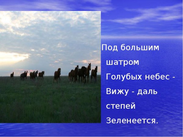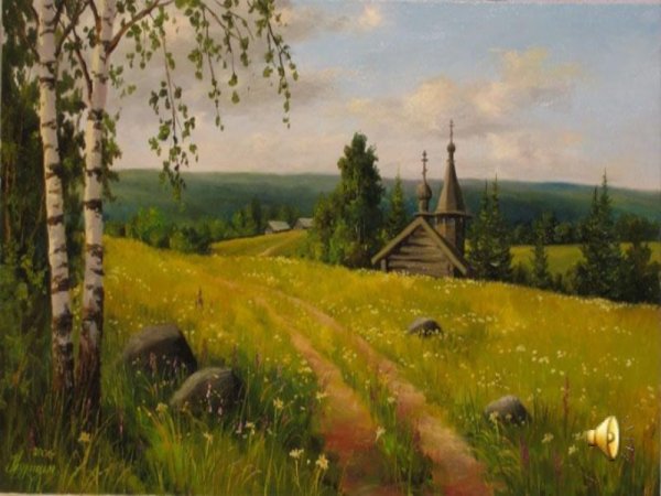 Иллюстрация к стихотворению "Русь" Софии Никитиной воплощает в себе красоту и глубину русской природы. На картине можно увидеть живописный пейзаж, где раскинулись бескрайние просторы зеленых полей, покрытых мягкими цветами травы. Над этой картиной восходит яркое и теплое солнце, освещая все вокруг благодаря своим лучам. Вдалеке виднеется река, которая символизирует продолжительность времени и историческую память Русского народа. Возникает ощущение спокойствия и гармонии, окутывающее природу и душу каждого человека, кто рассматривает эту иллюстрацию. Она передает незыблемость и прочность русского духа, его связь с природой и его величие.