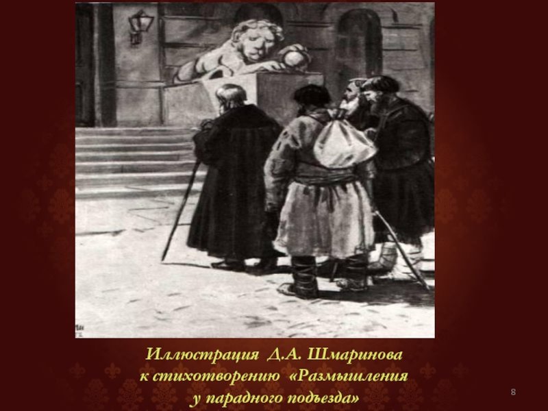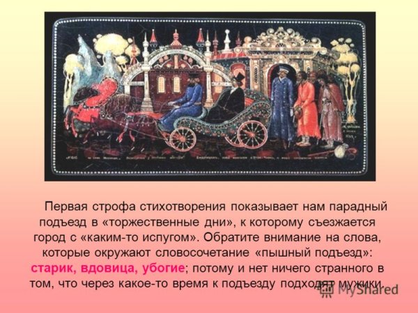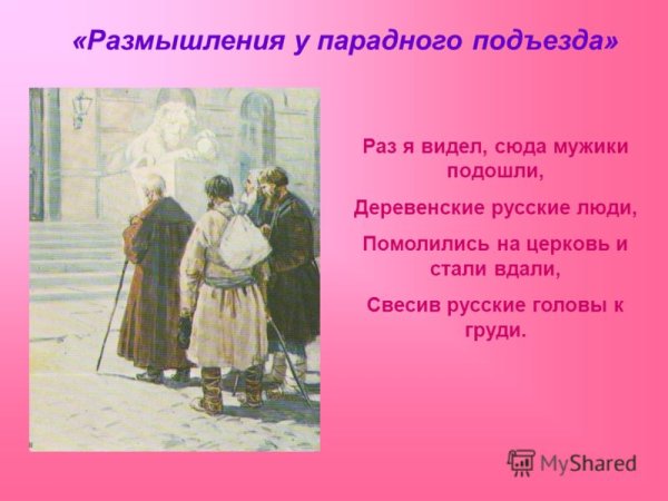Иллюстрации к стихотворению "Размышления у парадного подъезда" - это визуальное воплощение глубоких мыслей и эмоций, которые пронизывают данное произведение поэзии. Каждая иллюстрация передает особую атмосферу и настроение, создавая множество оттенков и смысловых переходов. Они помогают читателю еще глубже погрузиться в мир стихотворения, обогащая его восприятие и расширяя границы его воображения. Иллюстрации к стихотворению "Размышления у парадного подъезда" являются неотъемлемой частью произведения, их взаимодействие с текстом создает полную и неповторимую художественную композицию.