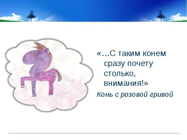 Иллюстрация к произведению "Конь с розовой гривой" легко погружает читателя в мир фантазий и магии. На ней изображен волшебный конь с удивительно яркой розовой гривой, что придает ему особую привлекательность и загадочность. Каждая прядь его гривы словно переливается всеми оттенками розового цвета, создавая ощущение невесомости и неповторимой красоты. Благодаря мастерству художника, каждая деталь на иллюстрации воссоздает атмосферу волшебства и повествует о непростых приключениях, которые ожидают главного героя. Эта уникальная иллюстрация привлечет внимание как маленьких, так и взрослых читателей, стимулируя их воображение и увлекая в захватывающий мир фантазий.