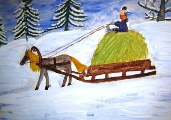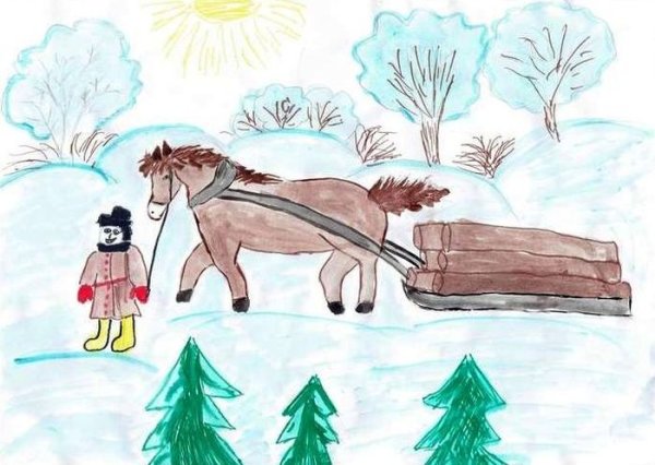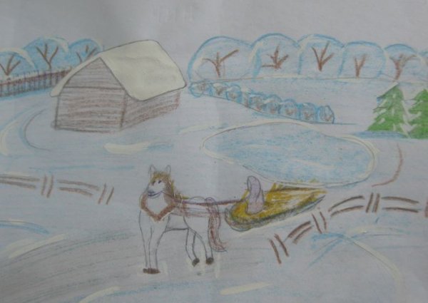 Зима - это прекрасное время года, которое крестьянин отмечает великолепными праздниками и радостью. Иллюстрация к стихотворению о зиме нарисована с изумительной тщательностью и вниманием к деталям. На рисунке можно увидеть мирное сельское хозяйство, обсыпанное снегом, а также крестьянские дома, окруженные замерзшими полями и лесами. Все это создает неповторимую атмосферу зимы, полную чистоты и спокойствия. Отличная работа художника передает не только внешние особенности зимы, но и ее особое влияние на жизнь и настроение крестьян. Рисунок является великолепным воплощением зимней атмосферы и гармонии с природой.