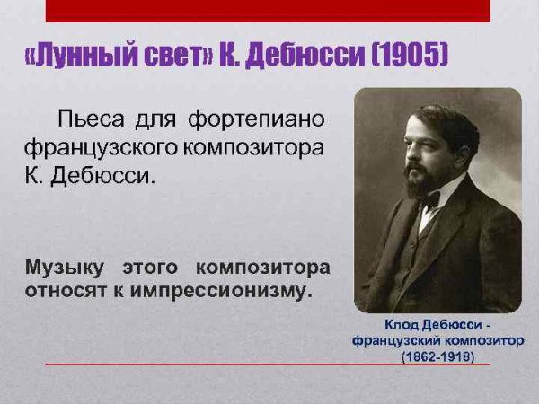 Иллюстрация к произведению "Лунный свет" Клода Дебюсси - это визуальное воплощение музыкальной композиции, которая окрыляет и пленяет слушателей своей нежностью и гармонией звуков. Величественно играющие темные оттенки и мягкий блик луны на фоне тихого пространства придают этой иллюстрации особую атмосферу загадочности и таинственности. Просматривая ее, можно скользнуть по ночному небу, ощутить его магическую силу и полностью погрузиться в мир музыки и волшебства, который раздвигает границы воображения и приносит блаженство и умиротворение в душу каждого слушателя. Великолепная композиция Клода Дебюсси воспевает красоту и нетронутость лунного света, раскрывая перед нами великолепие природы и самые глубокие эмоции, которые она вызывает. Иллюстрация к этому произведению - это прекрасная возможность увидеть и услышать музыку в одном образе, погрузиться в мир гармонии и эстетического наслаждения.