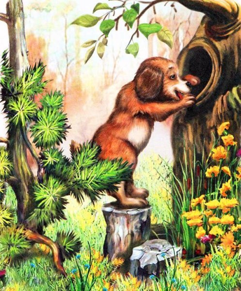 Иллюстрация к рассказу Бианки "Первая охота" великолепно передает атмосферу природы и напряжение момента. На картине изображены маленькие звери - енот и ежик, которые с интересом наблюдают за первой охотой главного героя, маленького лисенка, который собирается поймать свою первую добычу. Иллюстратор воссоздал детально проработанные детали природы, отражая характерные черты каждого персонажа. Захватывающий момент ожидания и волнения перед первой охотой переданы ярко и эмоционально. Эта иллюстрация позволяет читателю глубже погрузиться в мир рассказа и почувствовать все эмоции героев.