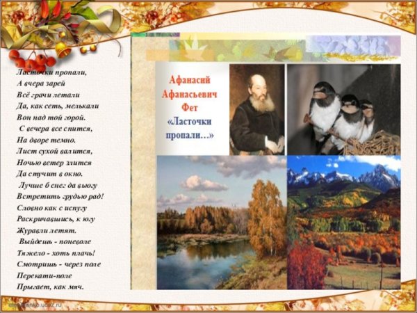 Иллюстрация к стихотворению "Ласточки пропали а вчера зарей" создана с искусством и тонким чувством передает глубокий символический смысл этого произведения. Здесь на картине изображены ласточки, которые исчезают на фоне заходящего солнца, что отражает уход летних дней и приближение осени. В то же время, яркая заря добавляет некую таинственность и загадочность, олицетворяя начало нового цикла жизни. Каждая мельчайшая деталь на рисунке имеет свое значение и помогает передать атмосферу стихотворения, заставляя зрителя задуматься о преходящем времени и цикличности природы. Эта иллюстрация прекрасно сочетается с текстом стихотворения, погружая зрителя в его мир и вызывая эмоциональный отклик.