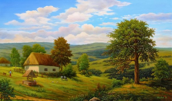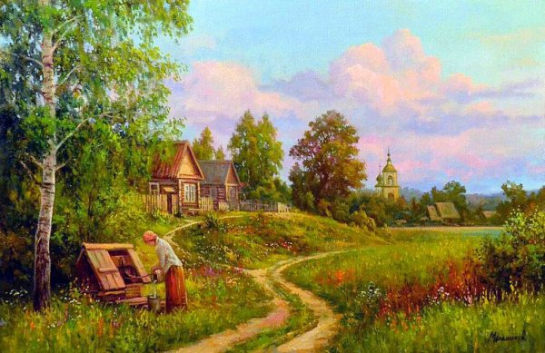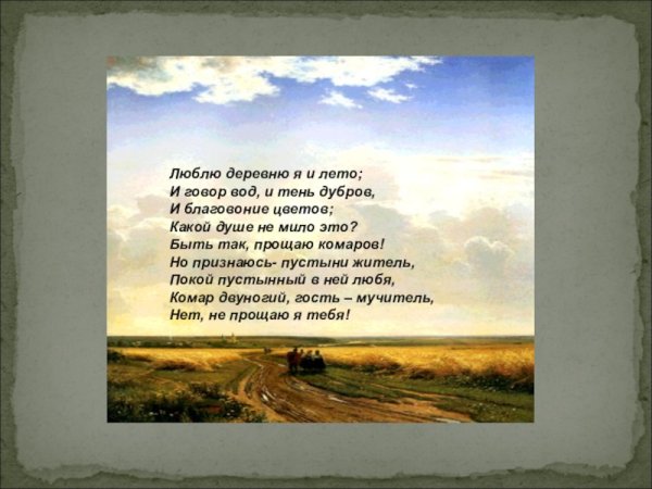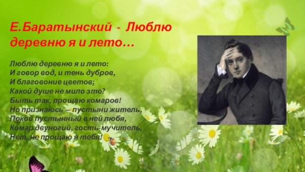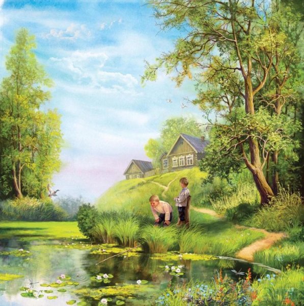 Иллюстрация к стихотворению Баратынского "Люблю деревню я и лето" представляет нам уникальную картину природы, в которой переплетаются теплые краски летнего солнца и живописные пейзажи деревенской местности. Она отражает гармонию и спокойствие, которые присущи этому времени года и месту. На иллюстрации можно увидеть раскинувшиеся зеленые поля, окруженные буйной растительностью, а также тихий пруд, усыпанный цветами лотоса. Вдалеке виднеются деревенские избы, на фоне которых играют лучи заката, создавая особую атмосферу тепла и умиротворения. Иллюстрация передает всю красоту и великолепие летней деревни, а также подчеркивает особую любовь автора к этому месту и времени года.