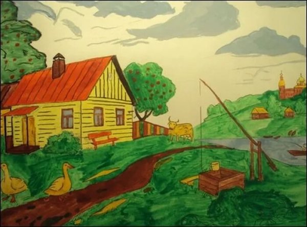 Иллюстрация к стихотворению "Деревня" создает великолепную картину, погружающую читателя в атмосферу уютного и спокойного сельского пейзажа. Живописные образы природы, зеленые луга, просторные поля, реки и озера, окружающие уютные деревенские дома, передают неповторимое очарование этого места. Все элементы иллюстрации тонко передают настроение стихотворения: его меланхолию и одновременно теплоту, вызывая чувство умиротворения и гармонии. Эта иллюстрация позволяет зрителю окунуться в мир деревни, почувствовать ее особый дух и красоту, и позволяет стихотворению раскрыться в полном объеме своего содержания.